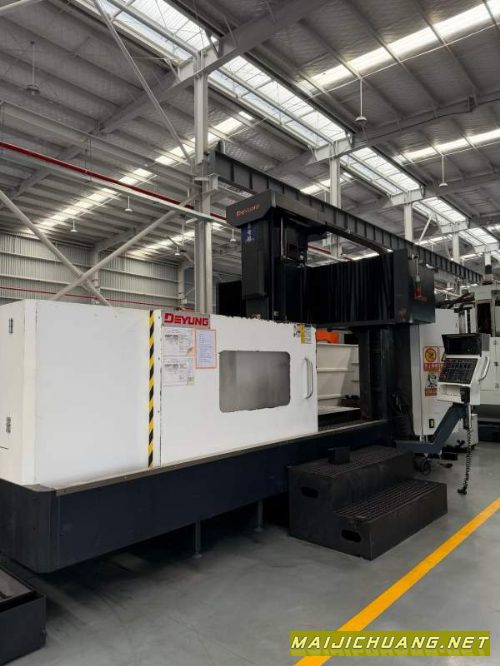 2023年德扬3018重型数龙控门.品牌:苏州德扬3018龙门年份:2023年4月系统:发那科MF Plus系统BT50主轴轮齿传动6000转三轴行程:3000x1830x800工作台尺寸:3030x1600两线一硬轨导,XY:55滚柱线轨龙门门高1160,门宽1900主鼻轴端到作工台:1000其他:带龙头式链排屑油,冷机,液站压,氮气平衡缸