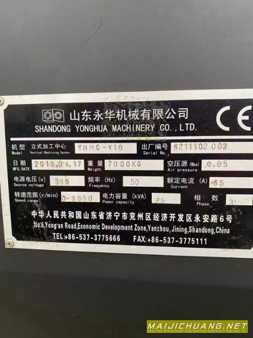 洛阳仓库开业大酬宾2018年永华1060加工中心,三线轨,bt40主轴8000转,发那科mf系统,带排削机,安装少用,需要联系。
