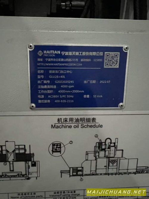 | 宁波海天2840数控龙门,工作台2000/4000mm,门宽2800m. |