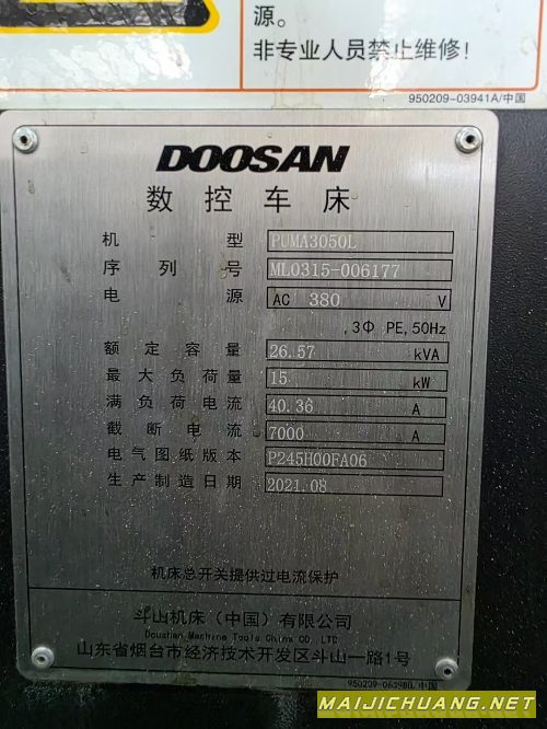 :斗山PUMA3050L,12寸卡盘,18.5KW主轴电机,过棒料76.