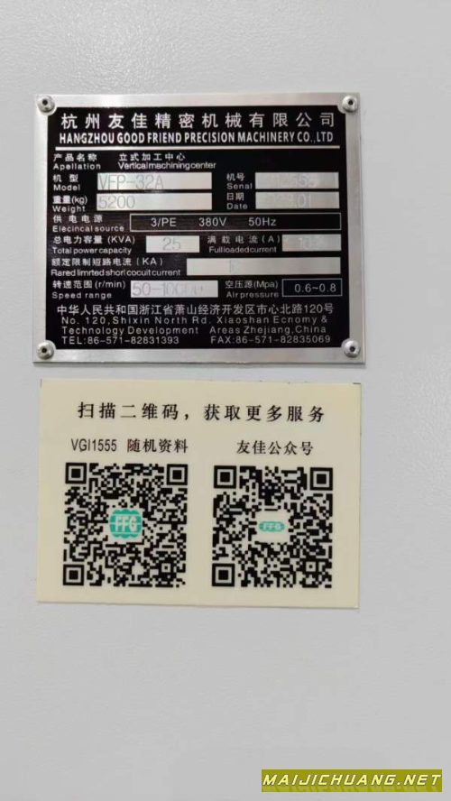 产品名称:新到两台2023年安装少用台湾友佳VFP-32A(只用了几百.
