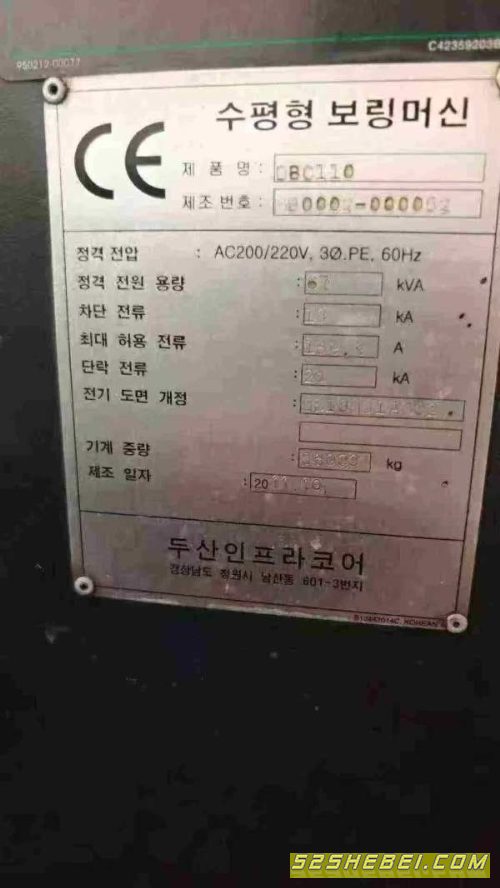 斗山110数控刨台镗床,2011.