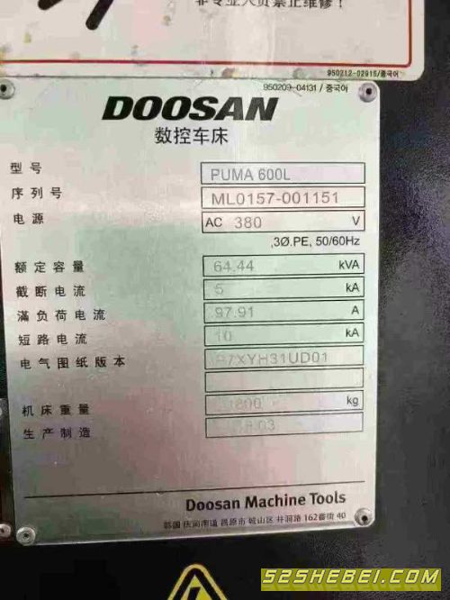 :韩国原装进口斗山PUMA600L数控车床,16寸液压卡盘,12.