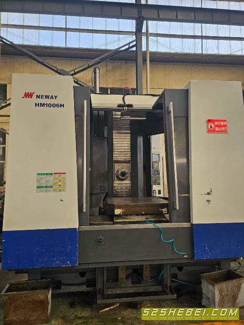 1000单工位卧加,纽威HM1006H单工位卧加,发那科系统,国企航空研究所使用,BT50主轴10000转高速机,双速电机,开机几千小时,三轴行程1600/1180/1050,B轴千分之一度,40把刀库,带油冷机,带中心冲水,带光栅尺!