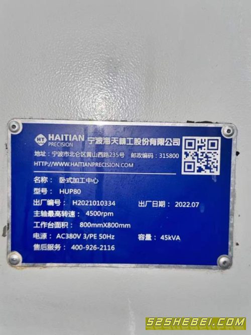 刚刚到货安装少用海天HU P800双工位卧加发那科oiMF Plus系统,主轴转速4500rpmBT50主轴,三线轨机,40把刀工作台尺寸:mm三轴行程:mm工作台分度:千分之一度2022年出厂,实际参数以现场为准