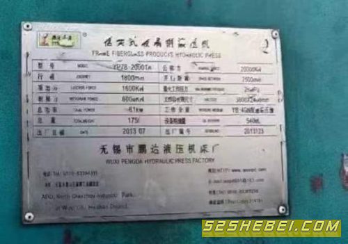 :无锡2000吨液压机,台面2.4米3.8米,开口2.5米,油缸.