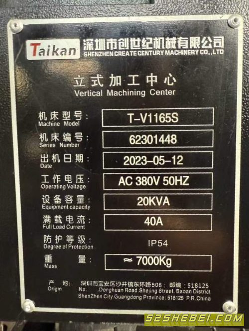 :新到一台2023年台群T-V1165S加工中心,发那科OI-MFPlu.