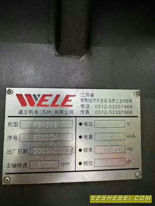台湾威立RB212数控龙门铣床,2017年出厂,三轴行程2100/1200/800mm,工作台1.1/2米,门宽1.3米,过门高1.25米,主轴鼻端到工作台1040,法兰克MF系统,阿尔法电机驱动,BT50主轴,转速12000,带光删尺,新机精度,带排削机, 信息编号:S480722 |