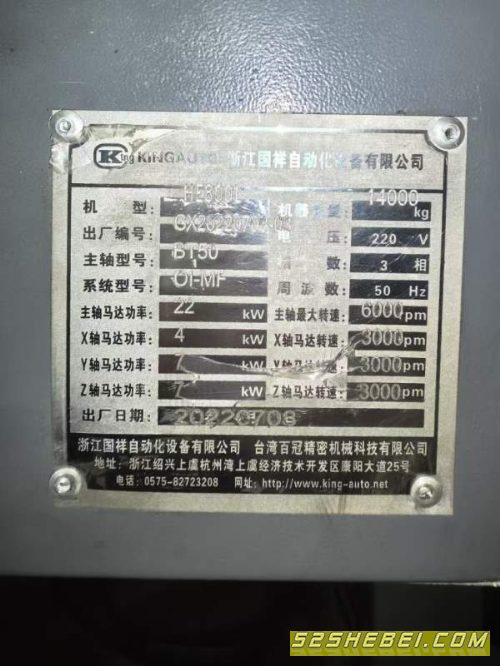 2022年台资品牌国祥800单工位卧加一台 准新国祥H发那科系统af电机驱动 三轴滚柱线轨 主轴BT50齿轮箱 6000转 岗田60把链式刀库 准新机