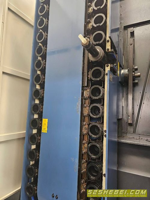1000单工位卧加,纽威HM1006H单工位卧加,发那科系统,国企航空研究所使用,BT50主轴10000转高速机,双速电机,开机几千小时,三轴行程1600/1180/1050,B轴千分之一度,40把刀库,带油冷机,带中心冲水,带光栅尺!